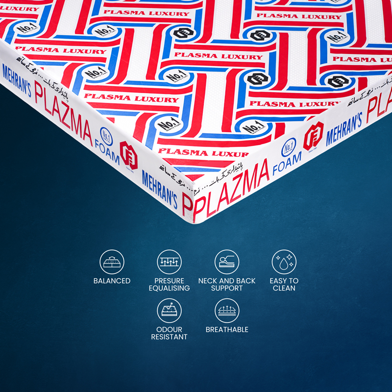Enhance your sleep experience with the Plazma mattress, a true blend of craftsmanship and functionality. This foam mattress is designed with premium fabric, insulating felt, and superior-quality materials for modern functionality, making it one of the best foam mattresses in Pakistan. The innovative foam layer provides excellent pressure relief, ensuring you slip into a deep slumber while preventing unwanted movements during the night, thanks to the anti-skid fabric. Mehran’s Plazma foam mattress is ideal for those seeking comfort, support, and durability, making it perfect for a variety of sleepers. Available in single, queen, and king-size mattress options, the Plazma mattress ensures that everyone can find their perfect fit. The skin-friendly fabric of this mattress helps prevent allergies, making it a long-lasting and healthy choice.